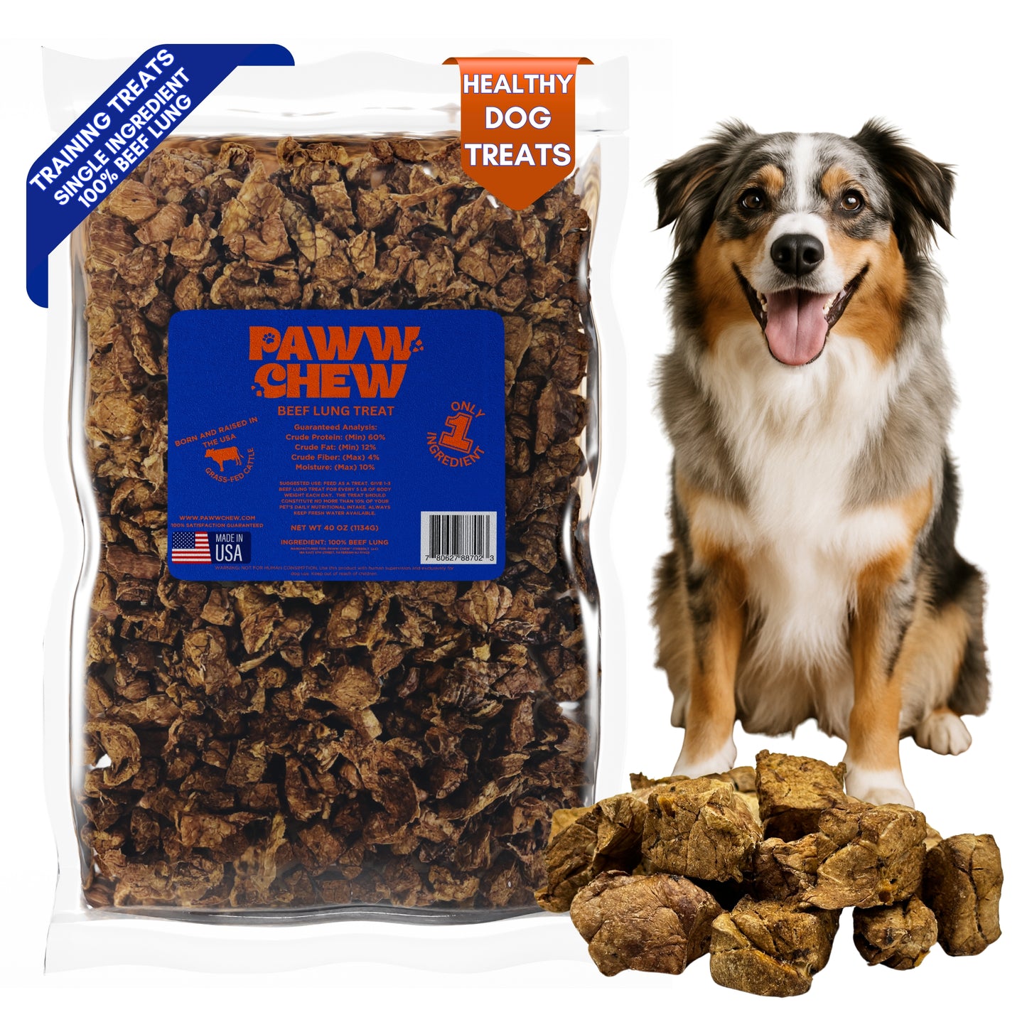 - What sets Paww Chew Beef Lung Treats apart is their purity. They are single-ingredient treats, ensuring that your dog receives only the best. Grain-free, low to odor-free, chemical-free, and preservative-free, these treats are as wholesome as they come.